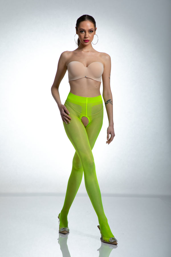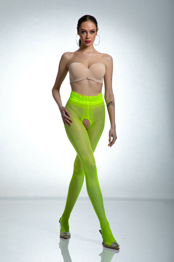 Amour Hip Gloss Crotchless Tights - Fluo Yellow