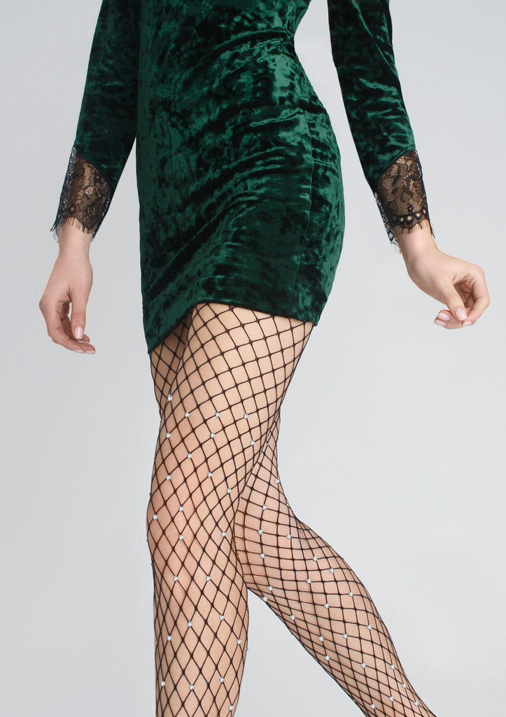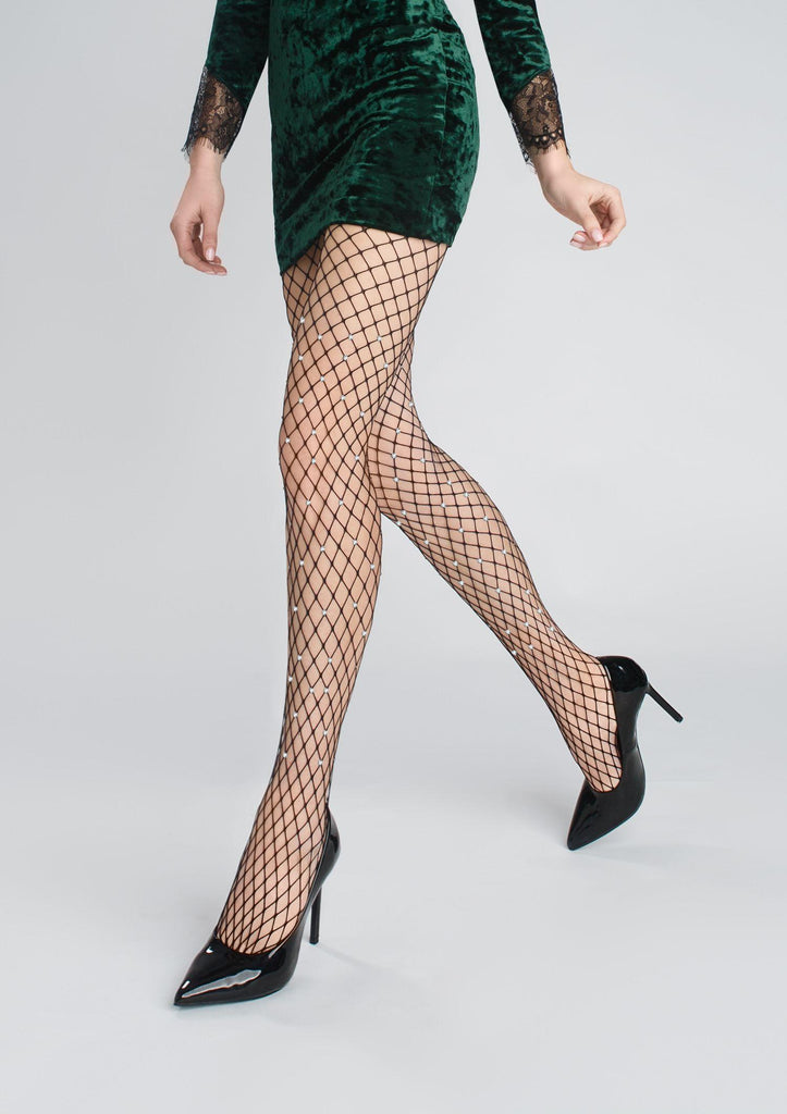 Elegant and decorative fishnet tights. Extraordinary and impressive. They are made of the highest quality yarn. They are decorated with subtle crystals on the entire surface.