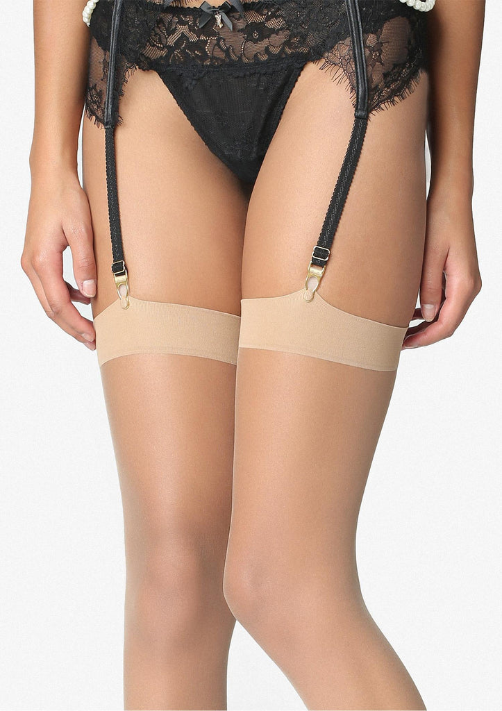 Ultra-thin 5 denier stockings with a natural make-up effect. Irreplaceable in the spring and summer season. The matte, silky finish gives the legs a natural color, while smoothing out minor imperfections. Japanese technology guarantees 100% greater durability and resistance to drawing. The stockings have a delicate toe reinforcement and a 4 cm silicone-free reinforcement.