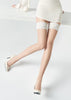 20 denier hold-ups with silicone lace trim and decorative bow. They have an invisible toe reinforcement and a 3.5 cm wide silicone strap.