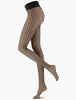 Sheer tights with tulle base, comfort waistband, flat seams, cotton gusset. Opaque and lamé waves intertwine to create an elegant pattern that illuminates the legs. The inimitable touch of Italian style.